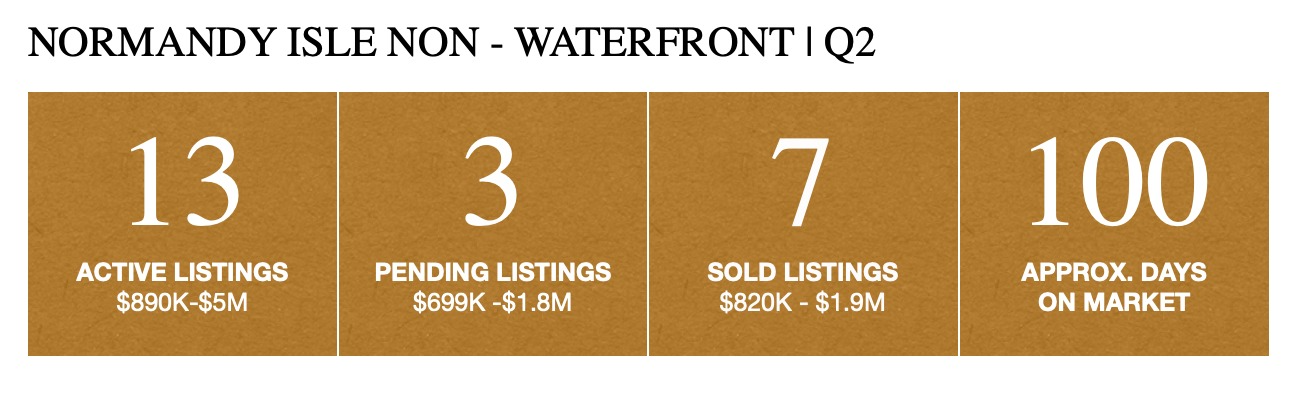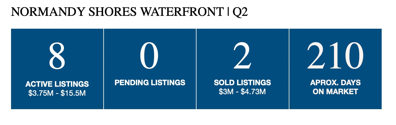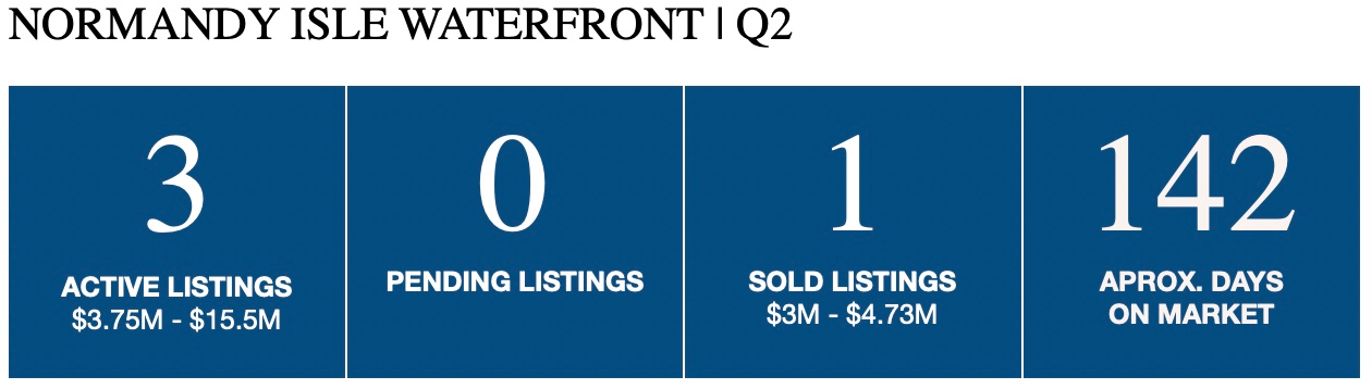 Prices have followed suit, with values rising approximately 3.1% year-over-year. Sales ranged from $920K for a fixer-upper on the dry side of Normandy Isle to a record-setting $16M for a 2025-built waterfront estate on North Shore Drive inside Normandy Shores. By comparison, the highest sale in the first half of 2024 topped out at $10.7M