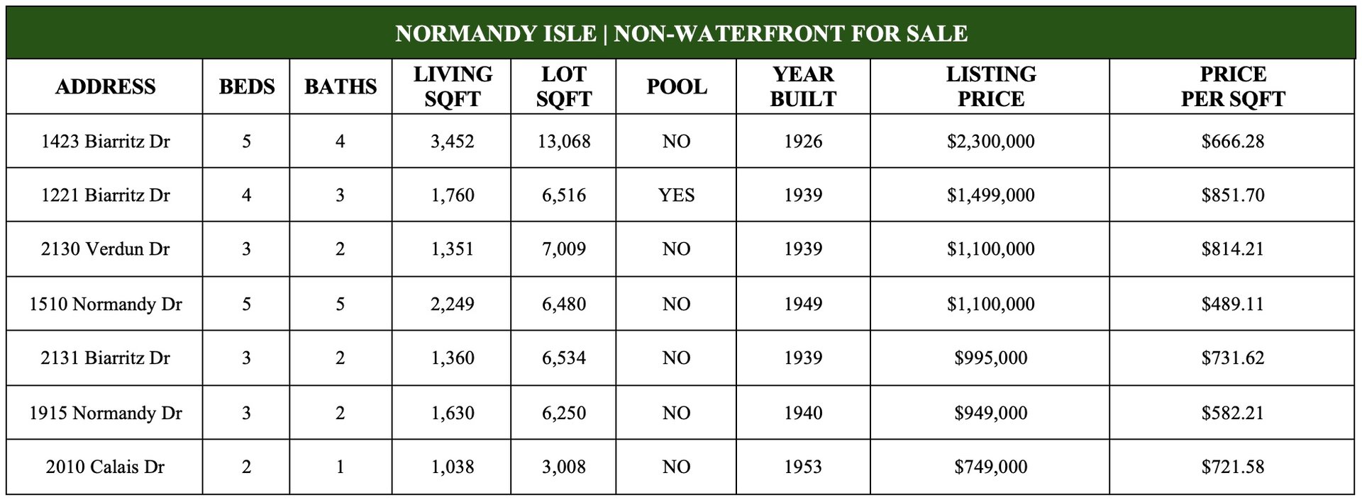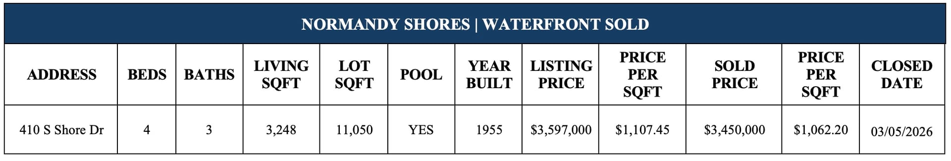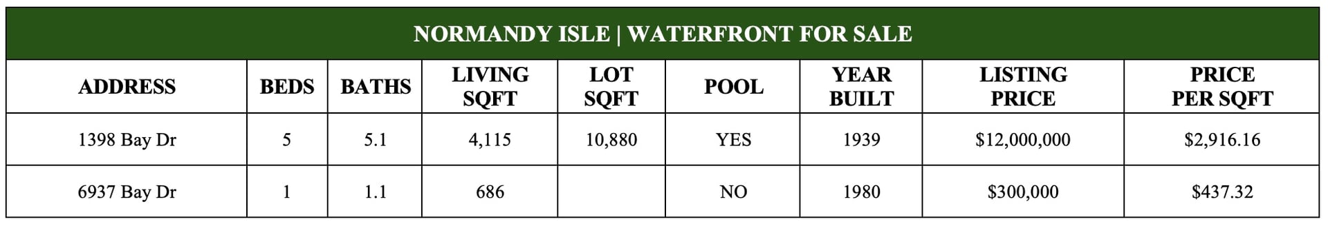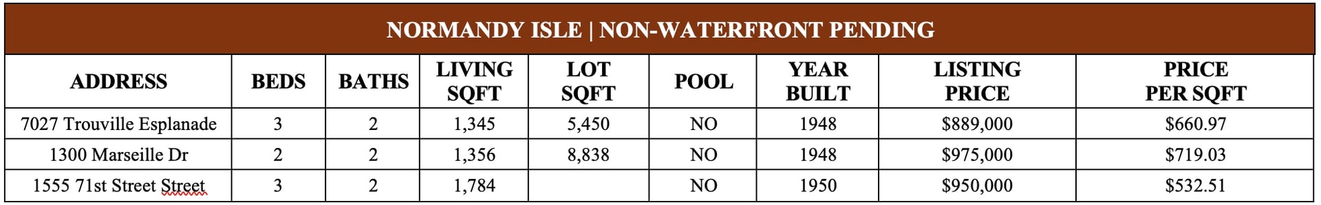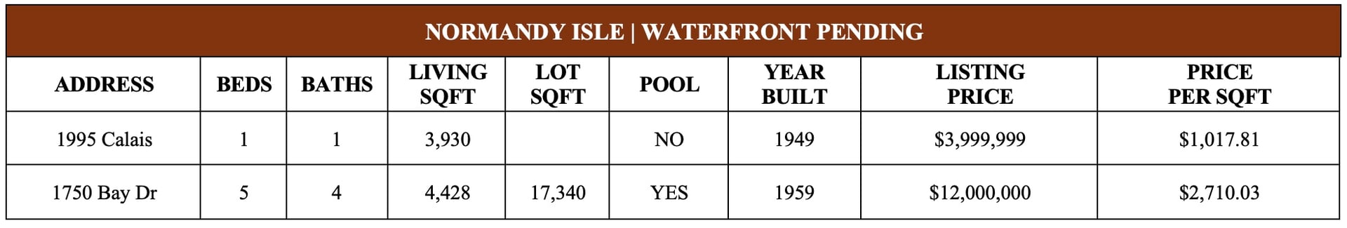 Normandy Isle remains a value-driven market with strong differentiation between waterfront and non-waterfront properties.