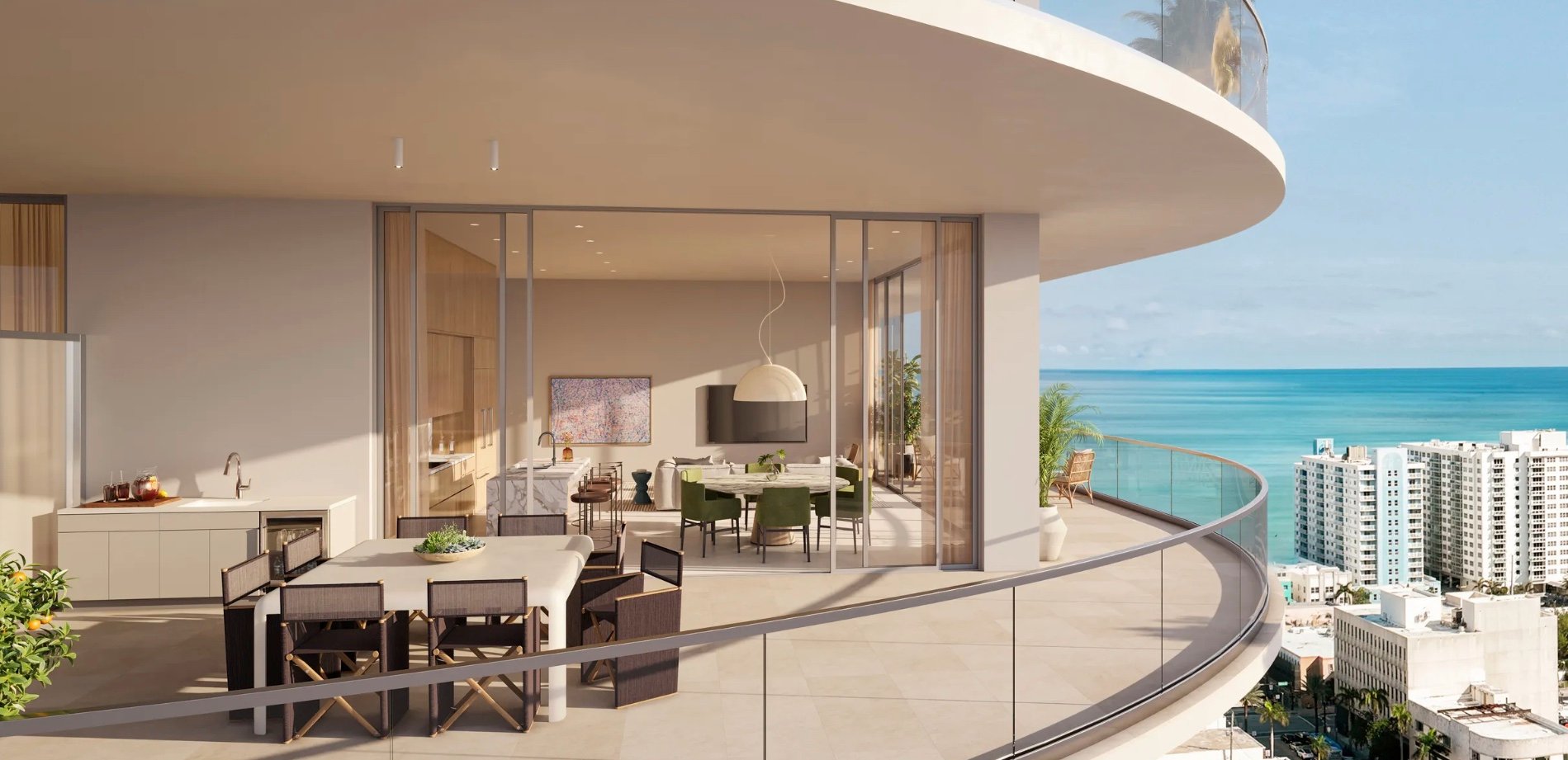 and expansive terraces that capture sweeping views of the ocean, Biscayne Bay, and the Miami skyline.
